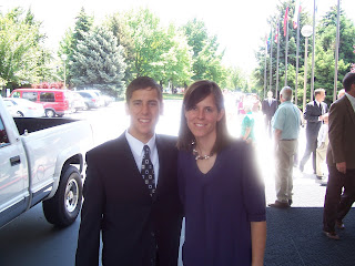 Today Trevor went in for his 2 year well baby check up. I can't believe it has been 2 years. He is getting so big. He is 38.5 inches tall and 29.15 lbs. He is in the 95% for height and 75% for weight. What a growing boy.